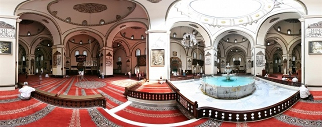 В центре торгового двора находится тихий дворик с небольшой каменной мечетью и многочисленными открытыми кафе, где можно отдохнуть от прогулок по рынку, попить турецкий кофе или чай в атмосфере спокойствия и прочувствовать древнюю историю города.