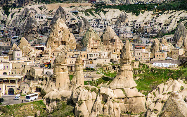 Похожая на огромный муравейник, крепость Учхисар – самая высокая точка региона, со смотровых площадок которой все красоты края открываются как на ладони: вулканы – виновники популярности края, долины с причудливыми образованиями, каньоны и поселения.