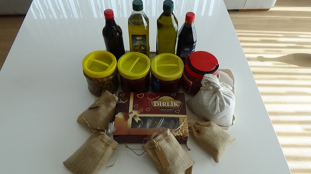 Домой каждый делегат Конференции получил буквально ящик того, чем богат край: оливкового масла, салчи, гранатового уксуса, творога, оливок, цукатов, специй и лаврового мыла: