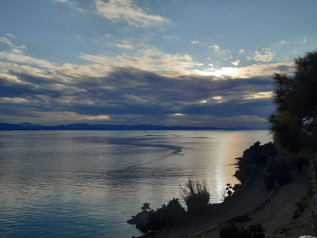 Эгейское море, накопившее тепло за лето, упорно не желает остывать и вода остается достаточно теплой для того, чтобы, хотя бы, омочить в ней ноги и погулять по воде вдоль побережья.