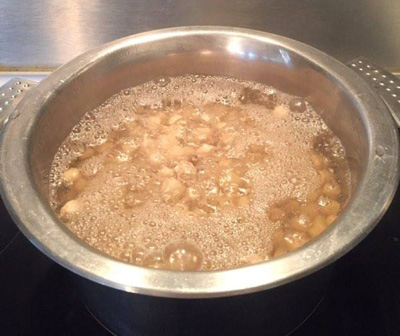 Шаг 7: После закипания огонь уменьшается до среднего и смесь приготовляется ещё 40-45 минут. После чего конфорка выключается, а блюду дают отдохнуть.