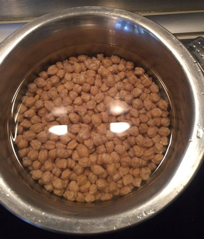 Шаг 6: В кастрюлю добавляется нут и наливается 5-6 стаканов горячей кипячёной воды с солью по вкусу.