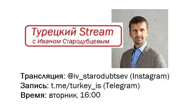 Эфиры "Турецкого Стрима", как я написал, проходят в Instagram. График - еженедельный, по вторникам с 16.00 до 17.00. А публикуются записи в Telegram-канале "Турция - это...".