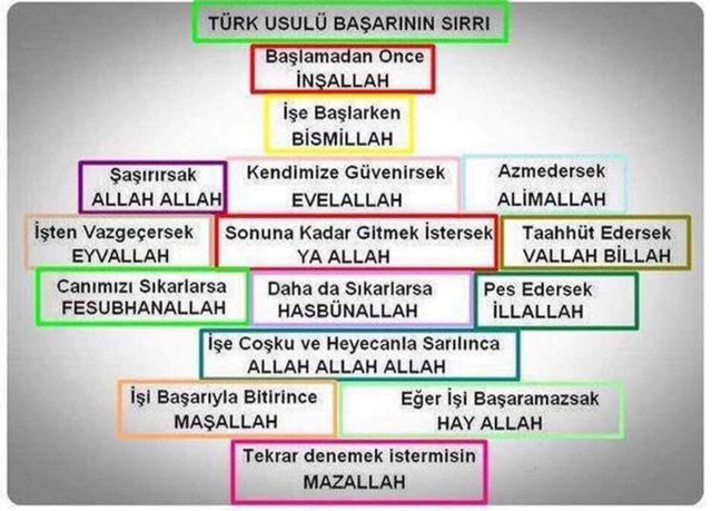 Не поминать имени Его в суе - это не про турок, в чём легко можно убедиться лишь кинув взор на все производные слова и выражения от слова Аллах. Которые являются непосредственными родственниками нашего Иншаллах.