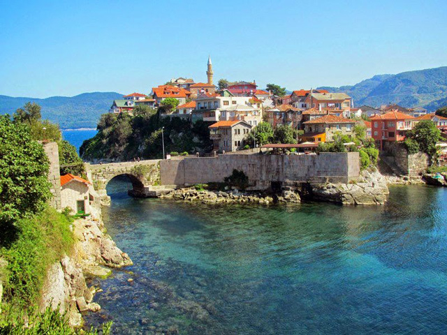 Небольшой рыбацкий городок на западе Черноморского побережья, занимающий полуостров и соединённую с ним древним арочным мостом часть острова Бозтепе. Иностранных туристов здесь почти не бывает, зато много турок, которые любят курорт за гармоничное сочетание древней истории, аутентичных построек, красивых пейзажей и за добродушие местных жителей. До песчаных пляжей, расположенных в бухтах, можно добраться за 5-10 минут практически из любого отеля, если только он не расположен на холме. Отсутствие в гостиницах привычного нам «всё включено» с лихвой компенсируют рыбные рестораны на самом берегу моря, где готовят также эксклюзивный салат Амасра, включающий более 20 ингредиентов.