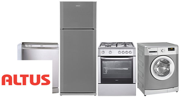 Ассортимент: Холодильники, морозильники, плиты, стиральные и посудомоечные машины, и мелкие кухонные приборы.