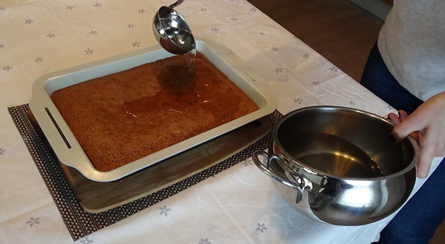 Шаг 2: Кекс равномерно, половником, заливается остывшим щербетом.