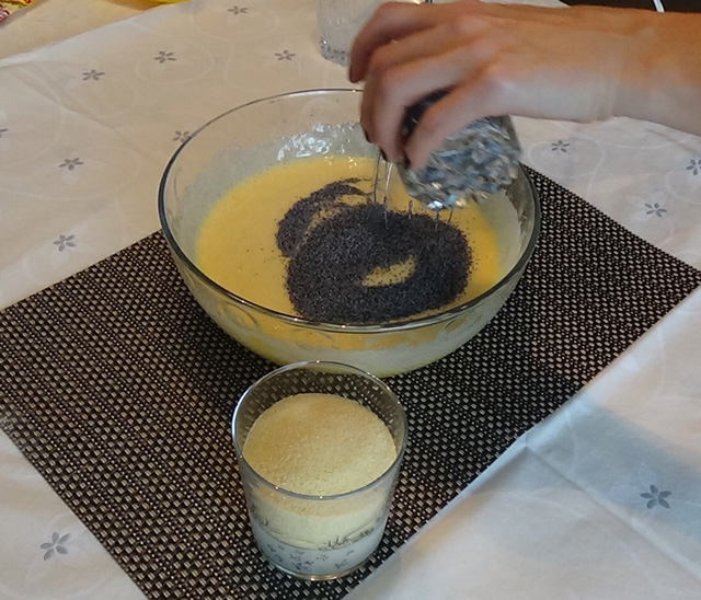 Шаг 3: Добавляется манная крупа и мак. Снова всё взбивается.