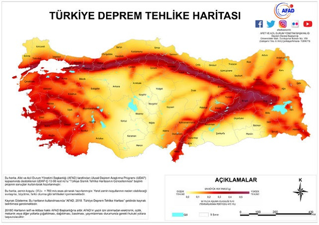 А теперь настало время просто посмотреть сюда - на карту угрозы возникновения землетрясений на территории Турции.